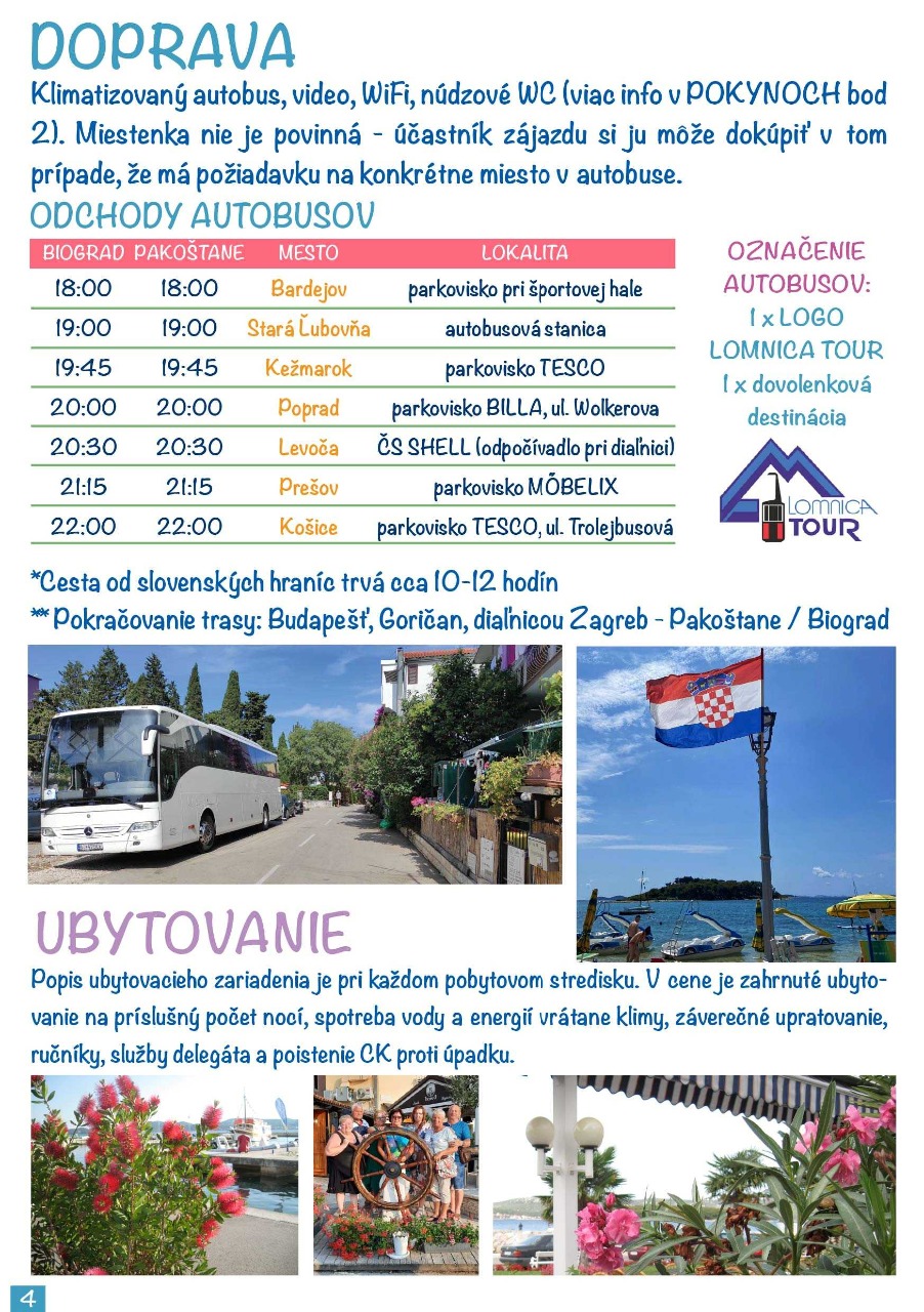 Doporučenú trasu, pokyny na cestu a pobytový poukaz s presnou adresou pobytového strediska a telefonických kontaktov na delegáta zasielame e-mailom alebo poštou priamo klientom cca 10 dní pred odchodom na zájazd. Účastníci s vlastnou dopravou začínajú pobyt nasledujúci deň po dni uvedenom v katalógu po 12.00 hod. a ukončujú pobyt jeden deň pred dňom uvedeným v tabuľke ubytovania do 9.00 hod. Parkovné pri penziónoch je bez poplatku. Parkovacie miesto v deň odchodu je potrebné uvoľniť najneskôr do 10.00 hod.